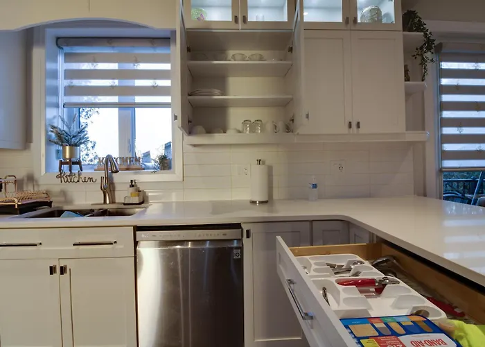 Die Villa liegt im Stadtviertel North York und verfügt über 3 Schlafzimmer sowie eine voll ausgestattete Küchenzeile mit einem Kühlschrank, einem Herd und Glasgeschirr.